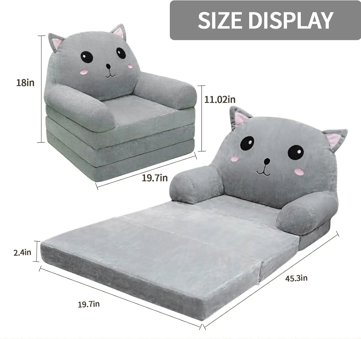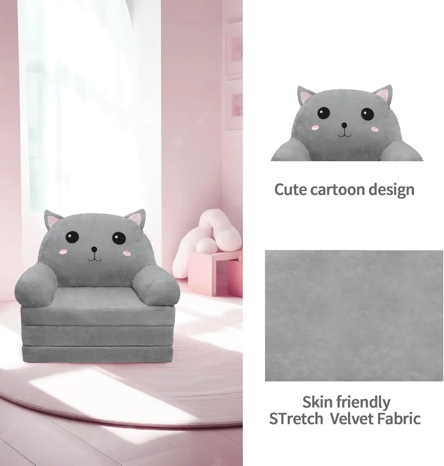 Foldable Gray Cat Kids Sofa
